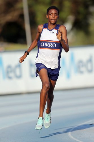 He was beaten in the 400m by Matimba Baloyi of Curro Hazeldean, who took gold in a meeting record time of 49.37 seconds. Baloyi also secured a first place in the 400m-hurdles as he crossed the finish line in 55.50 seconds.